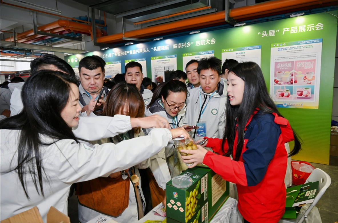 活动现场同步举办了“头雁”教学成果展与产品展示会,为新一年度乡村人才培育拉开序幕。在教学成果展区中,华南理工大学参展项目以“工业思维赋能农业”为核心,打造“品牌价值提升特训营”,推动数字技术与农业场景深度融合,图文并茂的内容让参观者直观感受“头雁”力量。