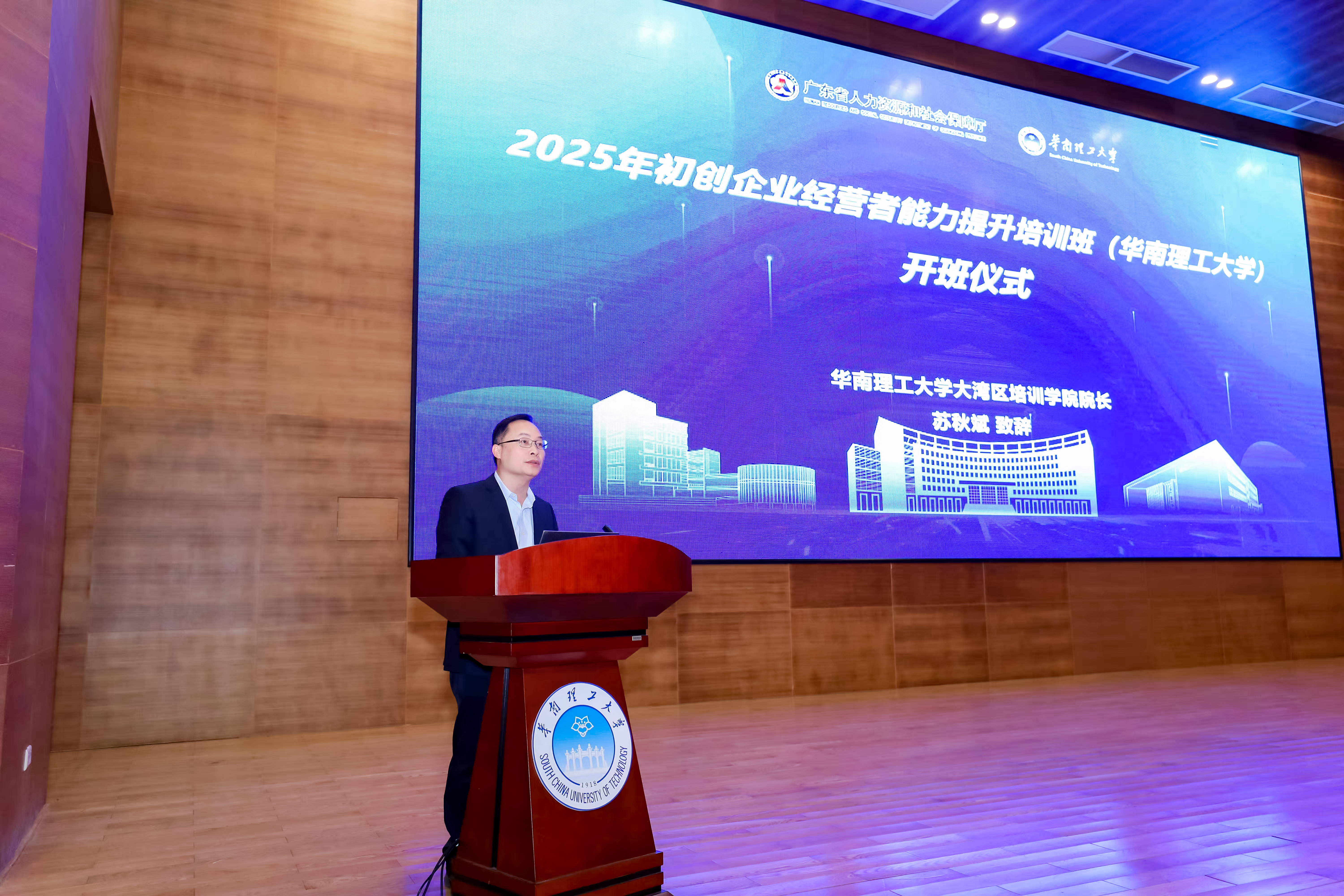 12月20日下午,由广东省人力资源和社会保障厅主办、华南理工大学承办的2025年度广东省初创企业经营者能力提升培训——数智化转型专题班在华南理工大学五山校区正式开班。本次培训聚焦渠道赋能与资源对接,在课程结构、师资阵容和对接机制上全面升级,吸引了来自全省先进制造、人工智能、生物医药、数字经济等领域的160名优秀创业者。广东省人力资源和社会保障厅创业指导处二级调研员张琦、华南理工大学大湾区培训学院院长苏秋斌出席开班仪式,粤科金融、广晟建设投资、粤财基金、越秀房产基金、深圳天使母基金、中国建设银行、佛山农商银行等近20家投融资机构代表共同见证启航。