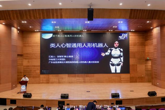 华南理工大学张智军教授与虞将苗教授团队代表姜文晶率先登台路演,分别展示了类人心智通用人形机器人、高韧超薄沥青磨耗层项目创新成果,不仅是为学员做出示范,也直观呈现了高校前沿技术得产业化潜力。