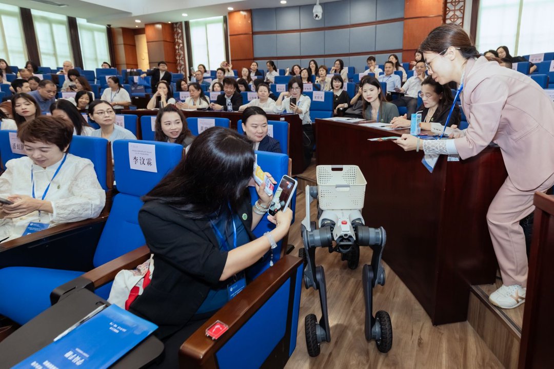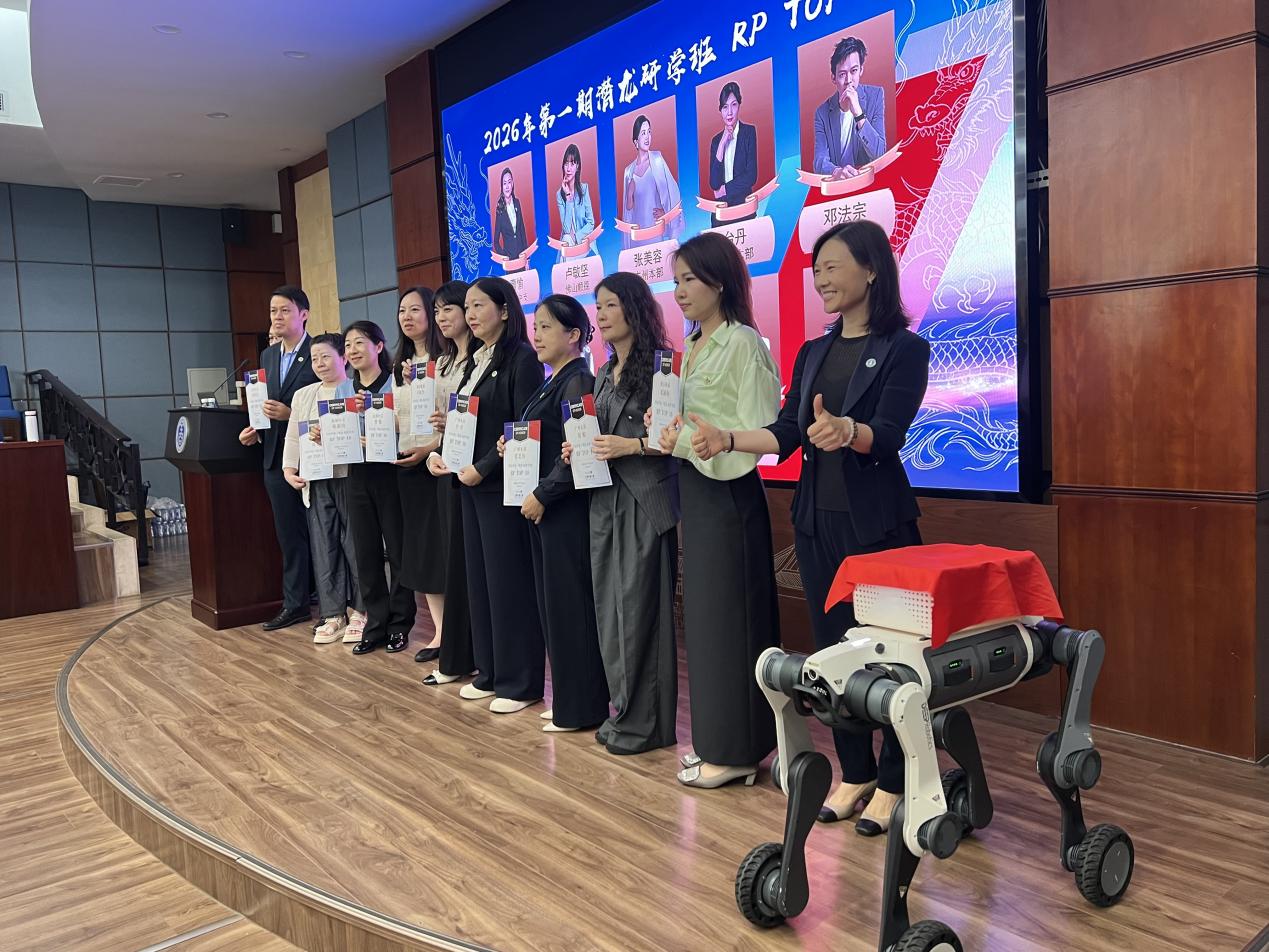 “开班氛围感直接拉满,沉浸式打卡AI黑科技,体验感太棒了!”参训学员纷纷赞叹不已。4月21日,工银安盛人寿广东分公司2026年一季度潜龙研修班在华南理工大学五山校区正式开班。活泼灵动的智能机器狗惊喜亮相现场,瞬间成为全场人气焦点。机器狗时而稳步巡游,时而灵活摆动花式秀技,还化身贴心“礼仪使者”热情服务学员,引得在场120余名学员纷纷争相近距离互动。