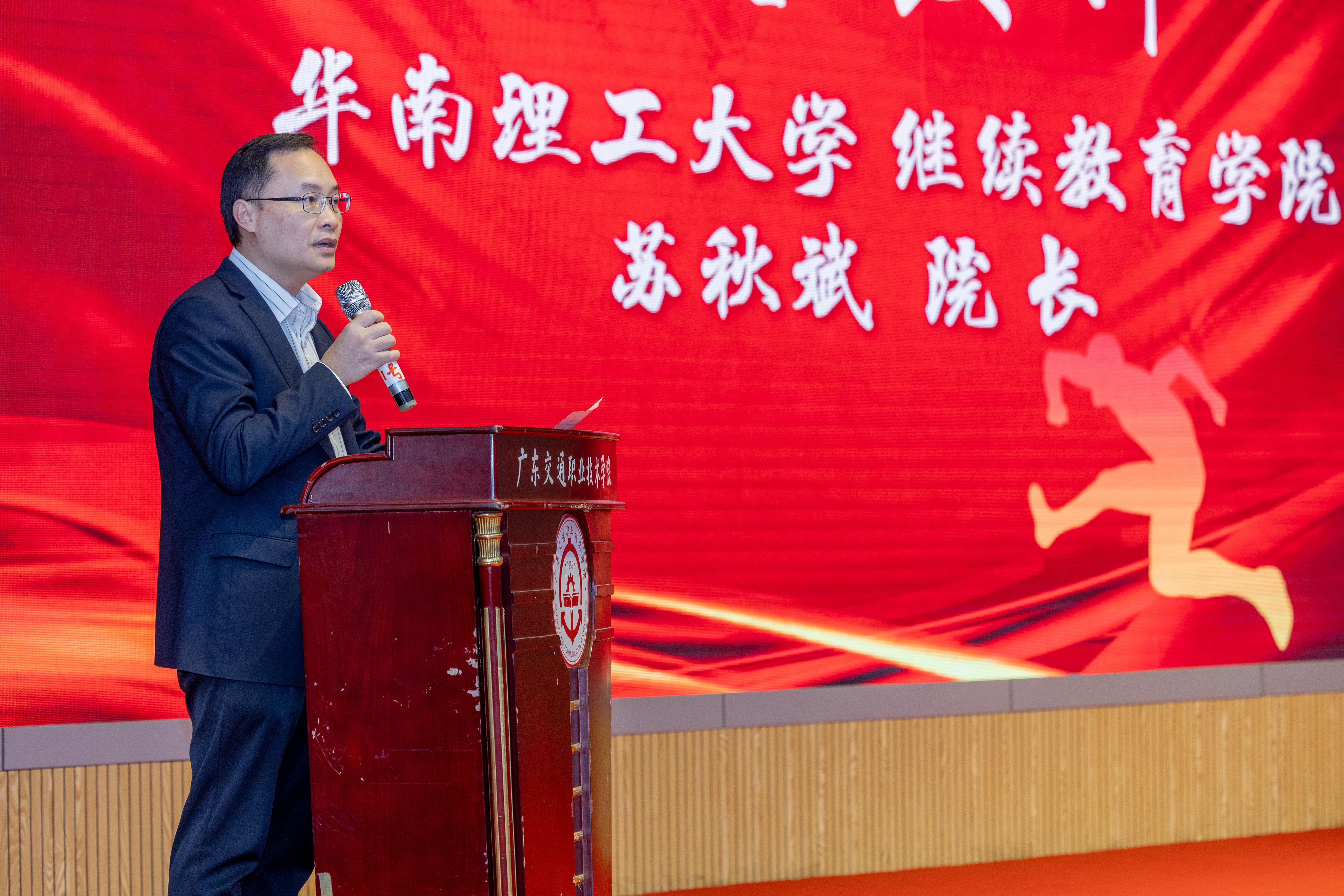 近日,我校自考相沟通项目开展2025年秋季专升本开学典礼系列活动,先后在广东轻工职业技术大学、顺德职业技术大学、广州科技贸易职业学院、广东交通职业技术学院举行了四场专升本学生开学典礼。继续教育学院院长苏秋斌、副院长吴远东及自考助学培训中心相关负责人受邀出席典礼活动。