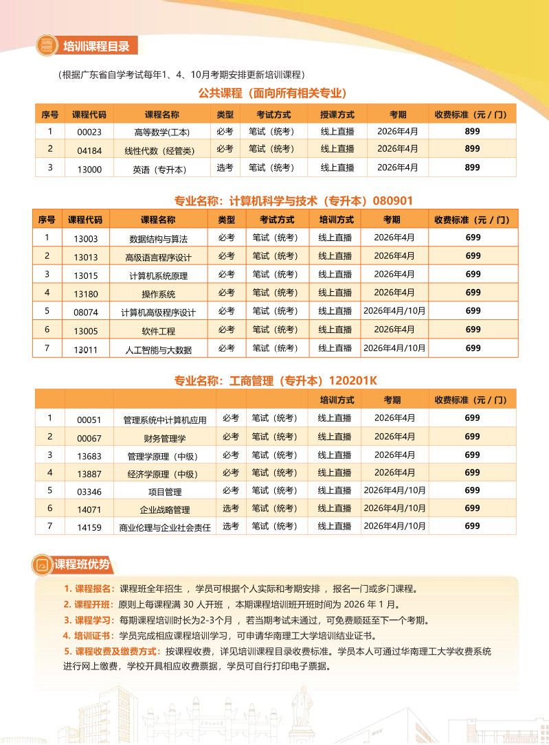 2026年4月考期华南理工大学自学考试课程辅导培训班招生简章