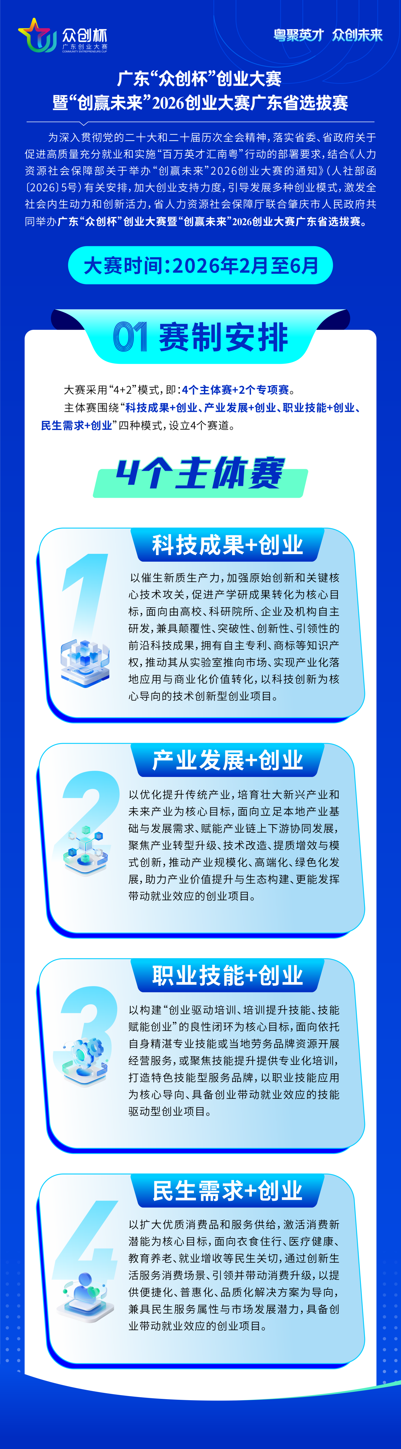 最高奖金50万元2026创业新机遇已就位广东“众创杯”创业大赛暨“创赢未来”2026创业大赛广东省选拔赛正式启动! 本次大赛以“粤聚英才 众创未来”为主题由广东省人力资源和社会保障厅肇庆...